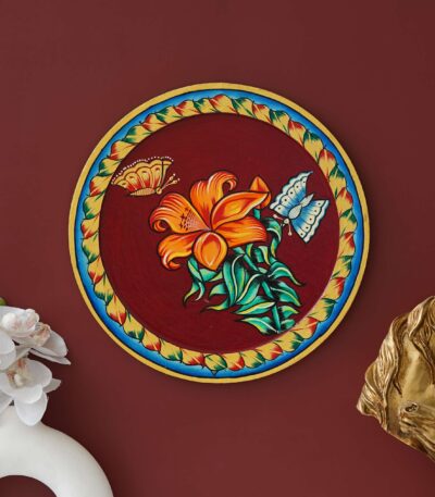 Decorative Red Plate with Butterfly and Flower Pichwai Painting