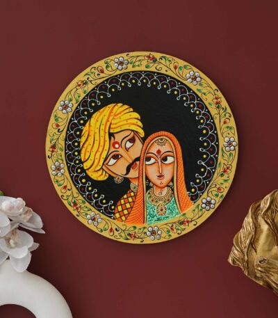 Pichwai Painting on Wall hanging plate beautiful rajasthani man & woman pichwai plate