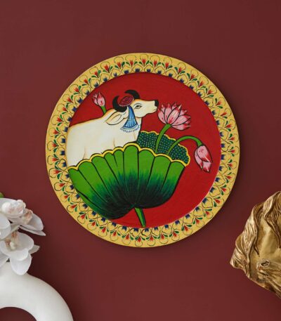 Hand-Painted Pichwai with Cow and Lotus Flower