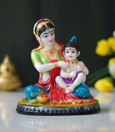 Hand-Painted Marble Yashoda and Krishna Statue (9 inches)