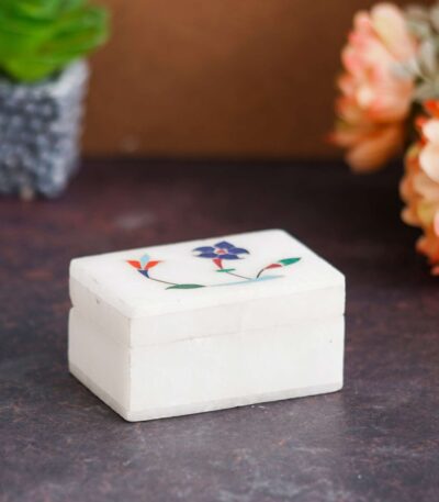 White Marble with floral inlay work Trinket Jewelry Box for Multi Purpose Use