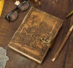 vintage handmade leather journal. Crafted with genuine leather, it radiates authenticity and charm, perfect for those who appreciate classic craftsmanship. The premium antique lock closure adds a touch of elegance and security, ensuring your thoughts and memories are safeguarded within its pages. Inside, you’ll discover 200 brown handmade pages, providing ample space for your musings, sketches, and stories to unfold. Whether it’s for journaling, sketching, or planning, this versatile journal is a timeless companion for your creative endeavors. Treat yourself or a loved one to this exquisite piece, a celebration of tradition and creativity